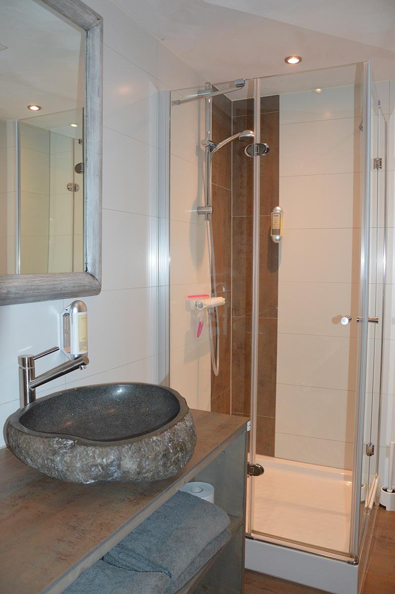 Deze kamer heeft een lits-jumeaux bed en is geschikt voor 2 personen. Het heeft het een complete badkamer met wastafel, toilet en douche. en uiteraard is het zijn de vaste bedden voor u opgemaakt.